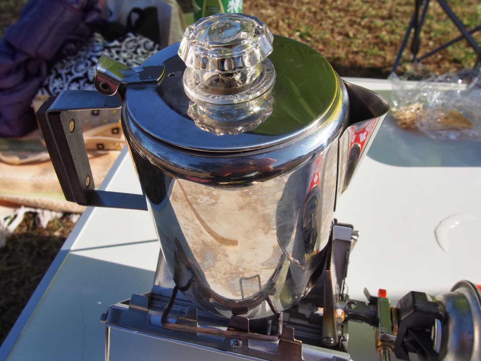 今回も美味しい料理と、交流で本当に楽しませて頂きました!その余韻に浸るように、今回発出動のLogosのヘキサタープの下で、コーヒーを頂き撤収しました。