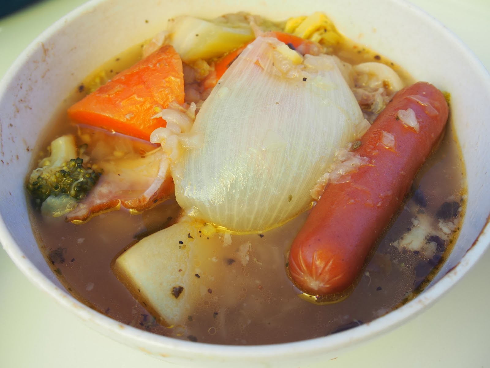 ダッチオーブンで作られている写真を撮り忘れて後悔しているのが、お知り合いの白崎さんが作ったテールを使ったビーフシチュー!5、6時間煮込んでいるらしく、これも激旨だった!