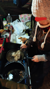 クリスマスという事で、七面鳥の代わりに大鶏排(ダージーパイ)、ダッチオーブンチーズケーキ、アヒージョなどパーティ料理盛りだくさんでうまうま!