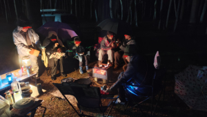 運悪く設営の時に雨脚が強くなり、ジタジタの中説明完了!