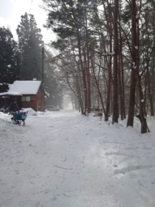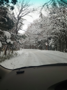 千葉から車で2時間ちょっとするとすでに雪景色に。