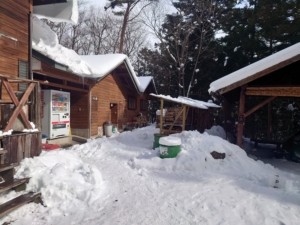 選んだのは受付の裏あたりにある区画。すでに利用されているから雪踏みは最小限でいけそう。