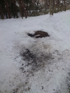 ただ、道は雪がタイヤで踏み固められている感じでスタットレスでも受付までいけました。が!受付入口でスリップ。後ほどタイヤに布巻きました(^_^;)