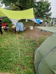今回は15年振りくらいにタープも出しての雨中キャンプとなりましたが、大雨ではないのでおのおのやりたい事は十分にできる感じ(^^)